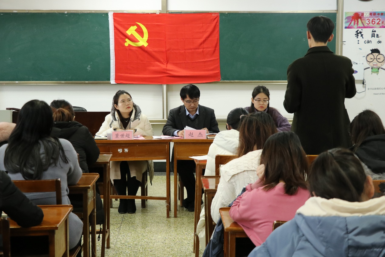 浏览量: 更新日期:2019-12-1112月10日,水果派av 本科生党支部于JC607召开预备党员转正大会,讨论王京阳、冯振等4位预备党员按期转正事宜。本科生党支部书记赵杰,组织委员李静琪及宣传委员董世超参加会议,大会由赵杰同志主持。