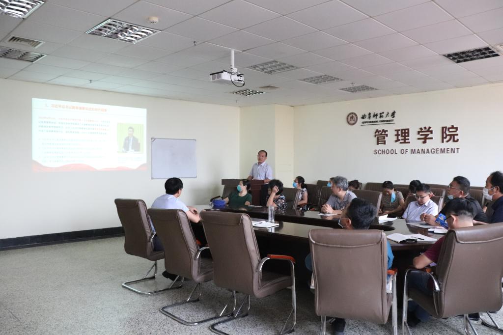 教工党支部于JC819召开主题党日活动。专题学习《习近平总书记教育重要论述讲义》,党委书记刘进同志以党课的形式进行学习宣讲,教工党支部全体成员参加活动。