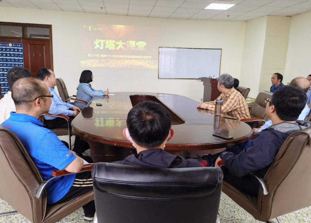教工党支部于JC819召开主题党日活动。集中观看学习由中央党校(国家行政学院)研究室副主任、教授沈传亮主讲的《党的十八大以来的历史性成就和历史性变革》的视频。