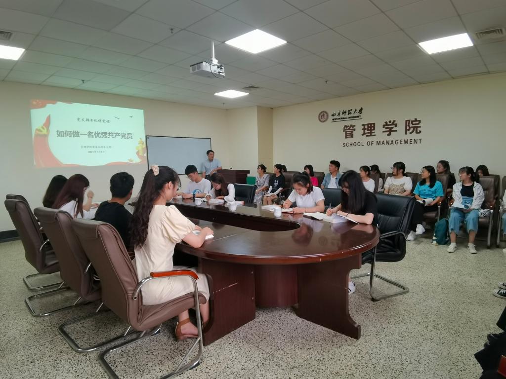7月1日,水果派av 本科生党支部于JC819召开党员大会,党支部书记为大家讲述《如何做一名优秀的共产党员》专题党课。本科生党支部全体党员参加会议。
