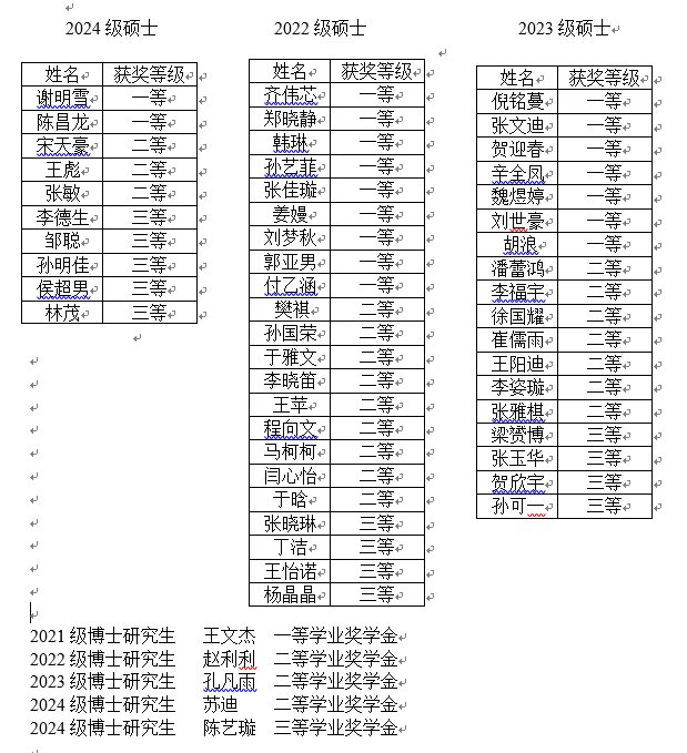 根据曲阜师范大学研究生学业奖学金管理办法,综合考虑科研成果,学业成绩及平时表现,经水果派av 专家评委组评审,确定以下人员获得曲阜师范大学2024年研究生学业奖学金。