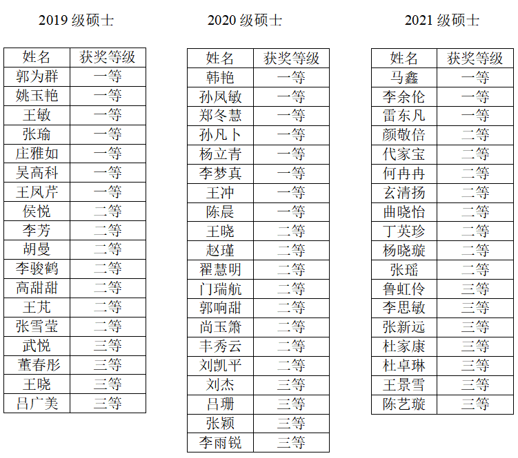浏览量: 更新日期:2021-11-11根据曲阜师范大学研究生学业奖学金管理办法,综合考虑科研成果,学业成绩及平时表现,经水果派av 专家评委组评审,确定以下人员获得曲阜师范大学2021年研究生学业奖学金。