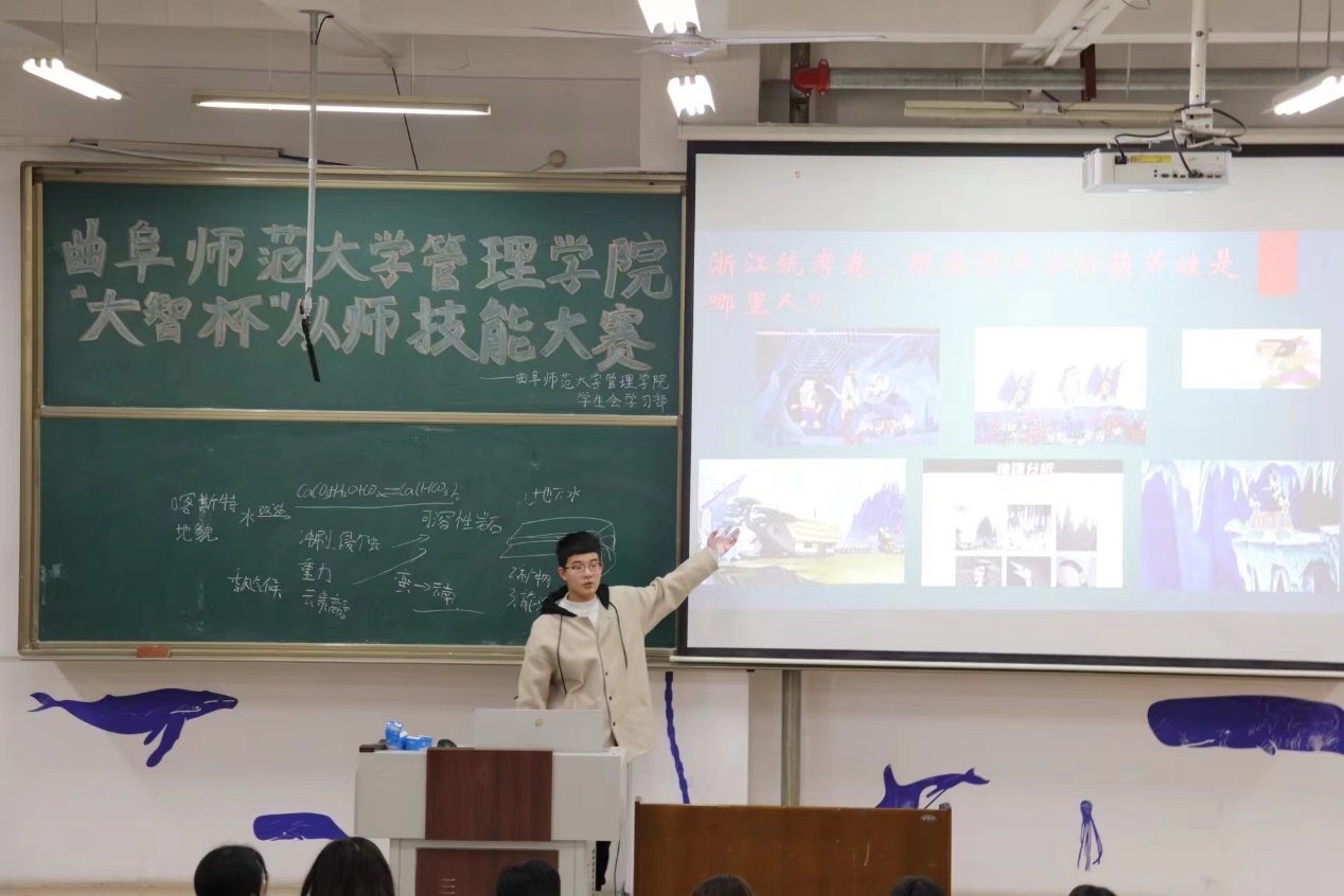 本次比赛共分为授课和提问两个环节。比赛过程中,参赛选手或灵动活泼、或严谨沉稳,他们条理清楚,层层剖析,在板书与PPT之间深入浅出、环环相扣,充分展示出自己扎实的教学功底。面对评委的提问,选手们依旧从容应答、巧舌如簧,将自己对“教”和“学”的理解与感悟融于其中,不仅博得场下阵阵掌声,还赢得评委的高度赞赏。经过激烈的角逐,比赛最终评选出一等奖一名,将推荐至校级复赛。