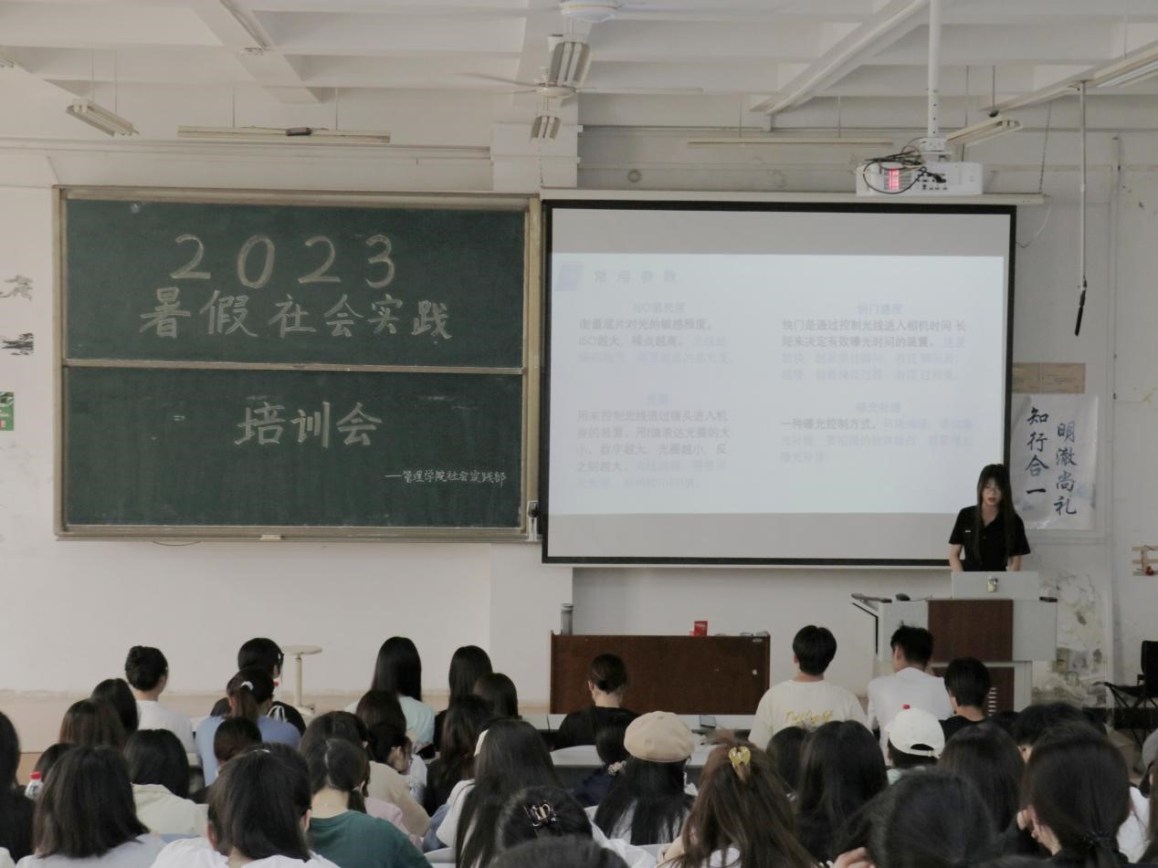 宣讲会伊始,社会实践部干事潘治钱就社会实践的实践流程及注意事项进行了详细介绍,加深同学们对社会实践的基本认知。随后,宣传部干事马凤敏和徐敏超对社会实践拍摄以及稿件撰写进行讲解。马凤敏从基本构图、常用的手机摄影功能、单反相机基础操作、拍摄注意事项四个方面进行讲解;徐敏超围绕中青校园和水果派av 宣传部两种投稿平台进行社会实践的稿件撰写培训。最后,2022寒假社会实践先进个人温思诺结合自身实践经历,从实践经历、活动意义以及活动感悟三方面进行经验分享,鼓励同学们积极参加社会实践,提升个人能力。