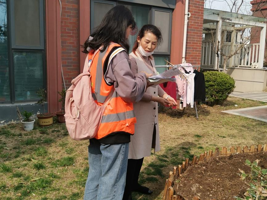 图为志愿者访问居民