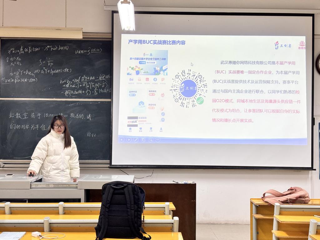 此次活动分为比赛内容讲解与线下售货体验两部分。比赛内容讲解方面,创新创业社副社从赛事简介、赛事规则、赛程安排、赛事流程、赛事答疑五个方面展开,明确各个赛道的侧重点及评审要求,将实战赛道的优秀作品进行展示讲解。