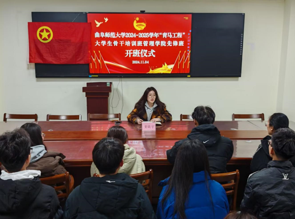 本次水果派av 先锋班“青马工程”大学生骨干培训班开班仪式在慷慨激昂的国歌声中正式开始。董晓宇在开班仪式上作动员讲话,她就本期“青马工程”培训班的课程设置、培训模式和时间安排进行了详细的说明,并简要回顾往年学院开展“青马工程”培训取得的良好成果,从习近平总书记对青年的勉励和期望出发,立足于习近平总书记关于青年工作的重要论述精神,阐述了继续深入实施开展“青马工程”的重要意义;最后,她对同学们提出殷切期望,希望同学们能够珍惜此次学习锻炼的机会,全面提升个人素养,在实践中不断提高思想道德觉悟,以扎实的行动诠释使命担当,努力成为德智体美劳全面发展的社会主义建设者和接班人。