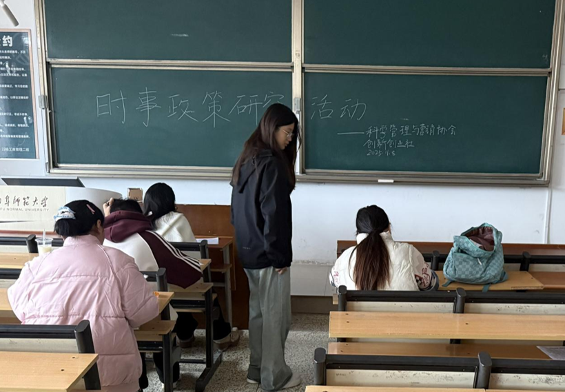 浏览量: 更新日期:2025-11-13(通讯员:张冉冉 郎桂宇 摄影:张冉冉 郎桂宇)为深化同学们对时事政策的理解,提升理论应用的能力,水果派av 科学管理与营销协会联合创新创业社于11月8日在JC108教室举办时事政策学习活动。