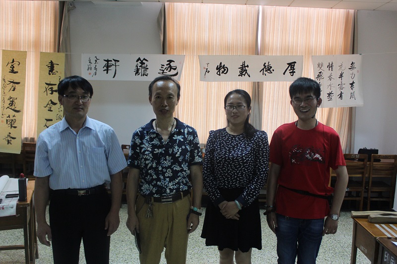 9:30,展览会准时开始。主持人首先向大家介绍了此次展览会展品的收藏者——王辉。王辉是水果派av 2012级优秀毕业生,在大学四年的时间里担任2012级工商管理班班长,曾任水果派av 13届学生会副主席。王辉学习成绩优异,多次在院校级比赛中获得奖励,收集文房墨宝作为他的一项兴趣爱好一直坚持到现在。此次展览中,一部分书画展品来自王辉亲笔创作,一部分是他的启蒙老师高秀平的得意之作,同时也不乏知名书法家的临摹作品。王辉带领大家一起观赏展出的书画作品,并向大家作详细的介绍。摆满展台的古代书房必备的物件让大家应接不暇,前来参观的同学们认真倾听,赞叹之声充斥着会场。展览会最后,高秀平老师现场提笔挥毫为大家题字,展览会在大家热烈的掌声中结束。