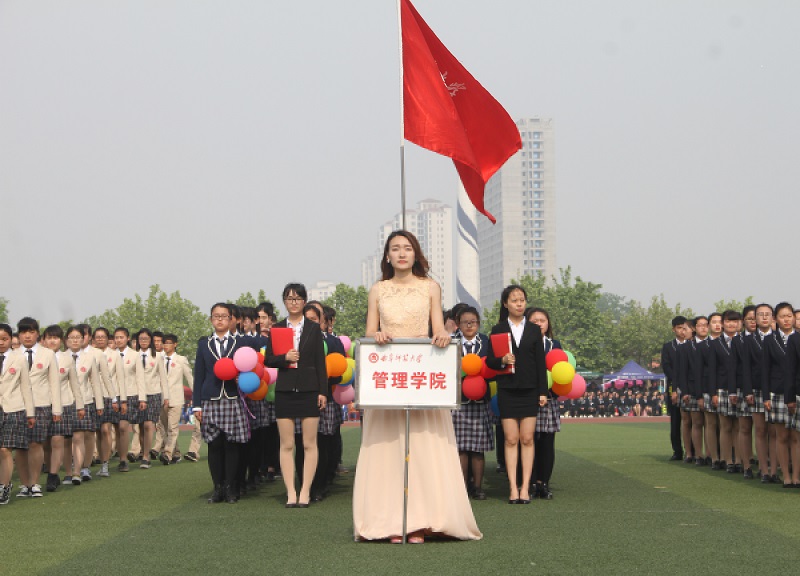 旌旗飘飘,鼓声铿锵,我校国旗护卫队迈着坚毅的步伐走在整个检阅队伍的前面,紧随其后的是裁判代表队以及英姿飒爽的各院系方阵。他们迈着整齐有力的步伐走过主席台,接受领导和老师的检阅——这既是他们展示自我的时刻,又是彼此较量的瞬间。“凌云赛场,斗志昂扬,唯我管理,笑傲群芳”,水果派av 代表队方阵伴随着高昂的乐曲,喊着激扬的口号向主席台走去。整齐划一的步伐、嘹亮的口号无不彰显着水果派av 学子朝气蓬勃的精神面貌,水果派av 同学欢呼雀跃,报以热烈掌声。入场仪式结束后,全场师生肃立进行升旗仪式,在催人奋进的国歌声中注视着五星红旗冉冉升起。