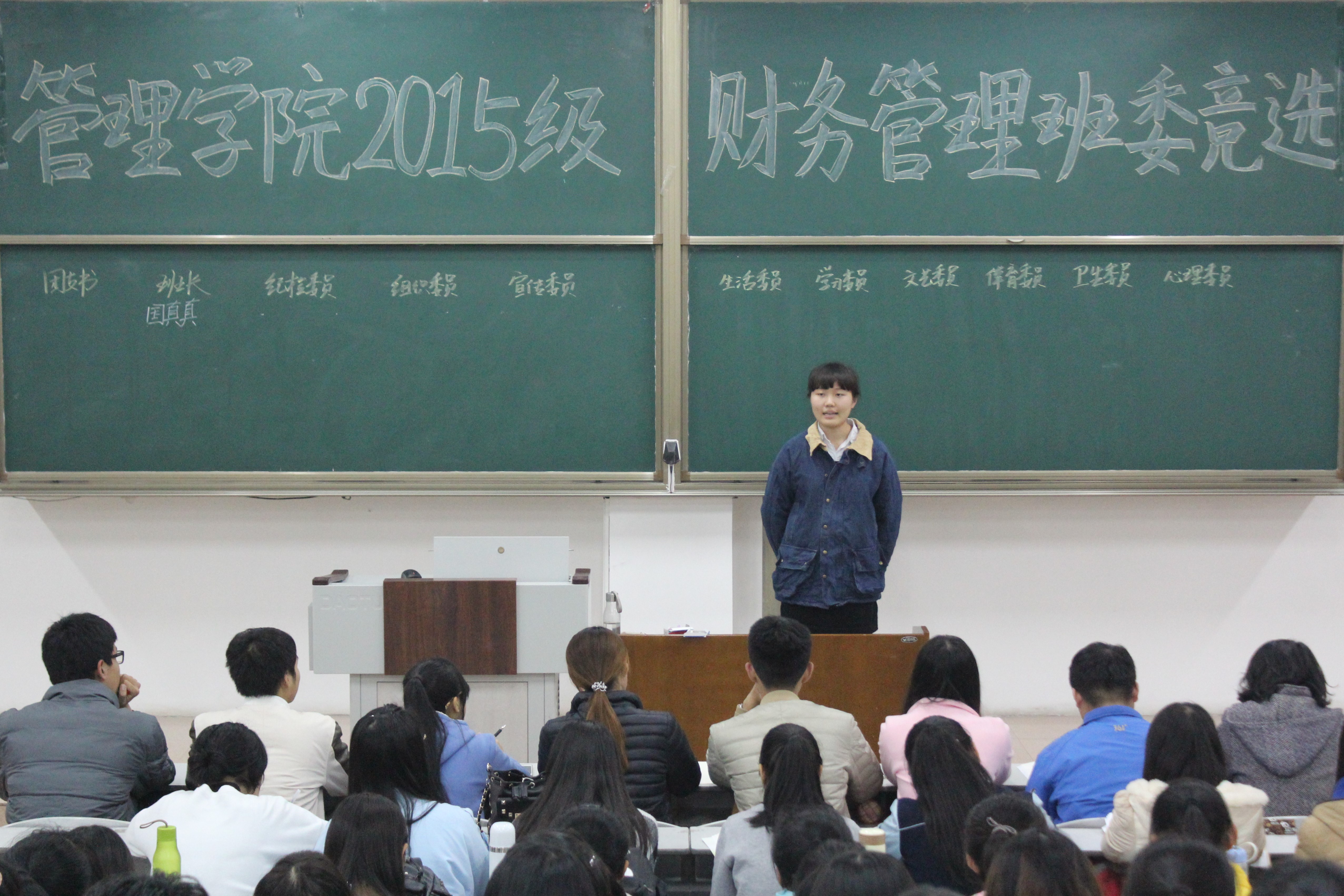 11月11日19:00,水果派av 2015级财务管理专业班委竞选于JA303顺利进行。水果派av 团总支书记、2015级辅导员宋秀娟参加此次班委竞选并担任主持,学生会副主席袁晟睿及2014级各班级主要学生干部参加了此次竞选。