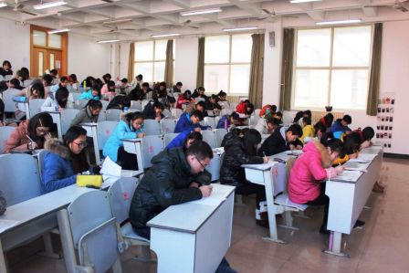 “端正考风,严肃考纪”8个大字警示着考场里的每个人