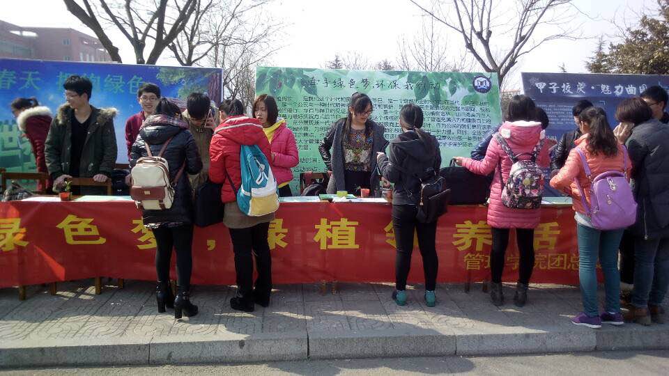 团总支发起的绿植领养活动在校区北门处顺利举行。活动以“牵手绿色梦,环保我行动”为主题,宣传绿色环保理念,号召曲园学子为低碳生活贡献一份力量。