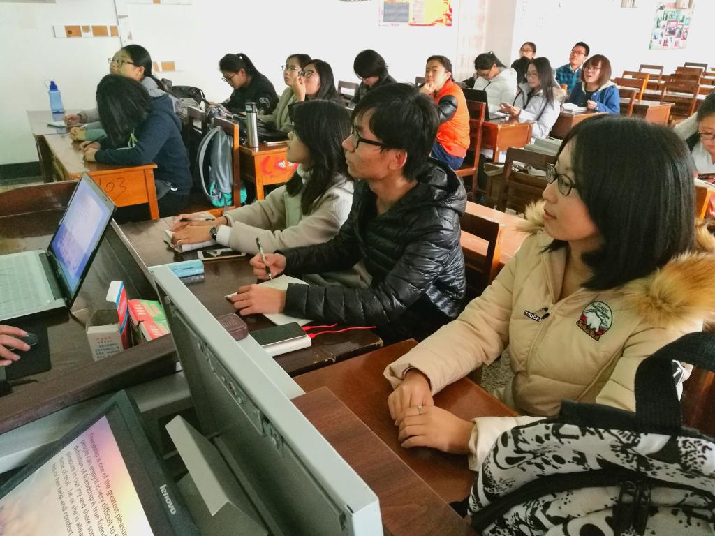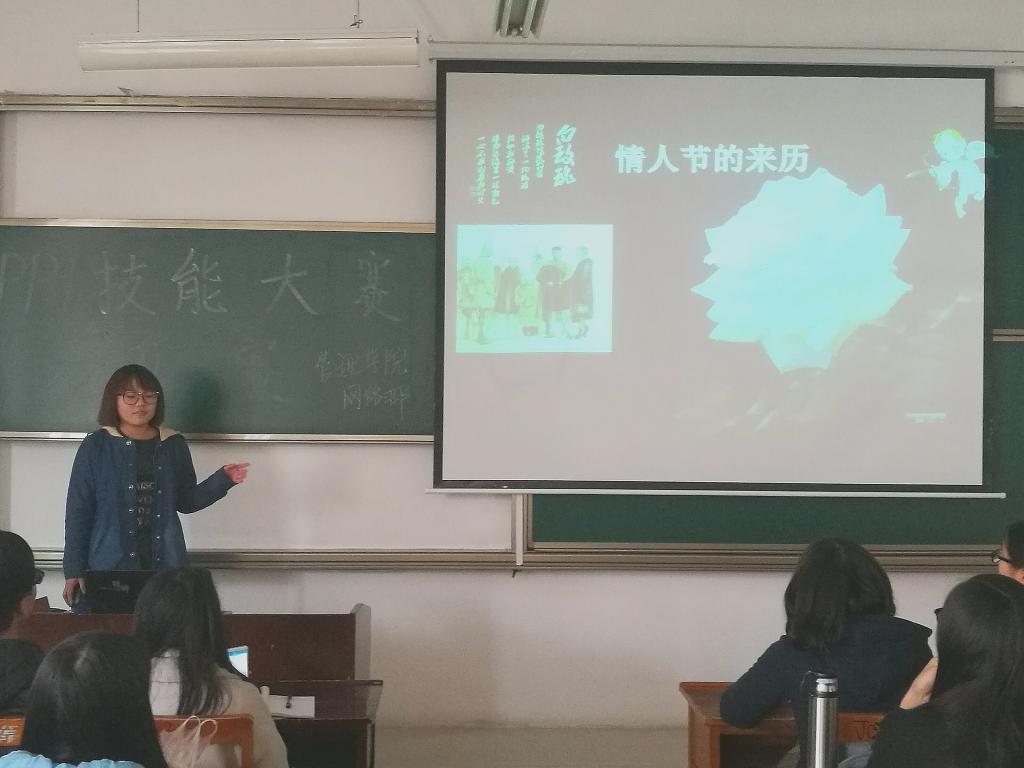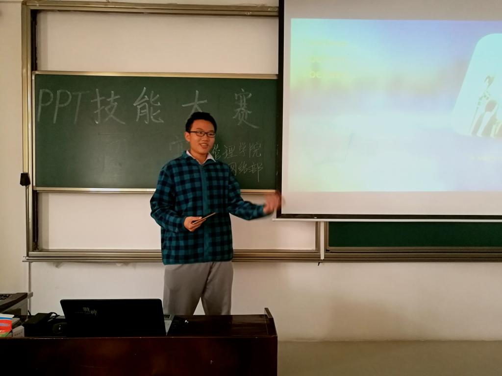 在前期准备工作中,同学们自行组队,积极讨论,每队制作了3到5张幻灯片。比赛开始后,选手们通过设置超链接,插入背景音乐、视频等基本操作展示自己的PPT技能,同时加以生动有趣的演讲对该队的主题进行展示。在各队的主题展示中,有对父母无悔付出的感恩,有对已逝金色童年的回忆,有对背起行囊去旅行的渴望。最终经评委打分讨论,决定六支队伍晋级决赛。