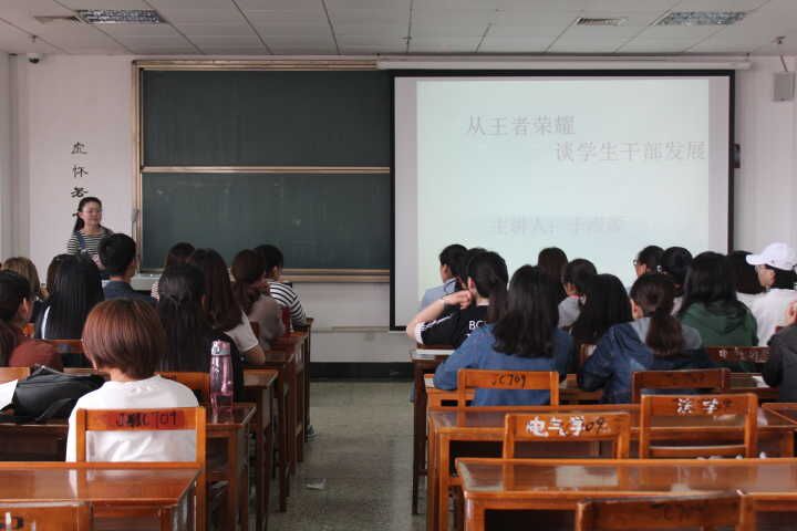 从游戏出发,引学生共鸣。于老师从时下流行的手游“王者荣耀”入手,围绕自知、团队合作、沟通、个人能力、时间管理及善于思考六个方面展开培训。她强调学生干部要有思想觉悟和团队意识,在开展活动时更要具备创新意识,不能抓着老一套不放手,并呼吁学生干部注重个人能力,自觉做学院的先行者、排头兵。同时于老师也指出人生不是游戏,学生干部的工作也不是游戏的观点,并希望各部门之间互相包容互相帮助。