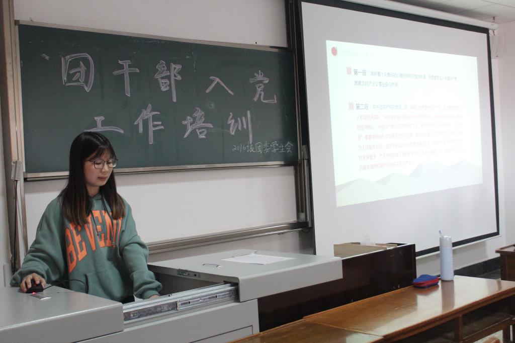 为了加强团干部对入党流程的了解,10月18日16:00水果派av 于JC709举行了团干部入党工作培训。组织部部长徐维苹担任主讲人,15、16、17级各班团支书参加了此次培训。