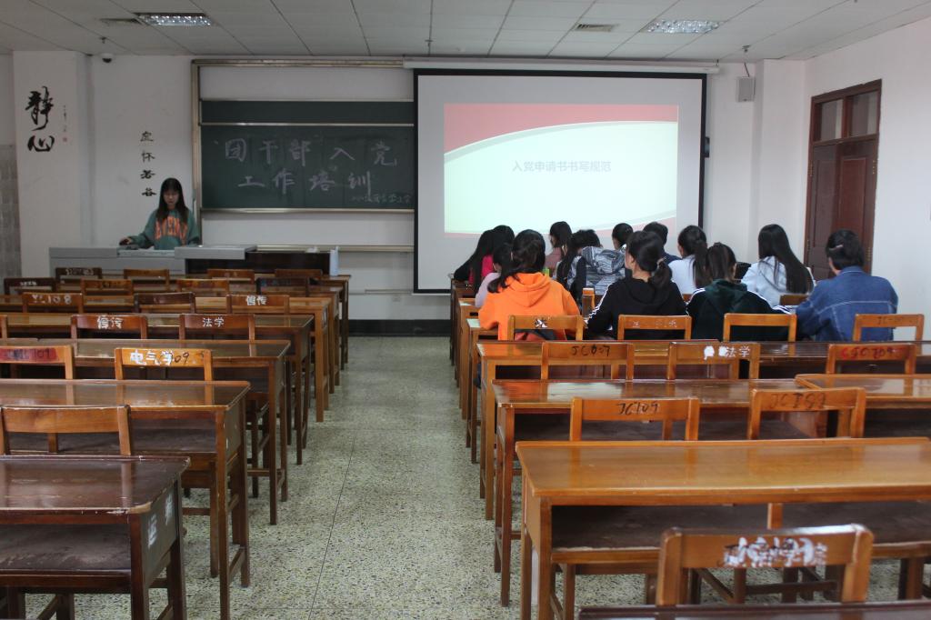 此次团干部入党工作培训主要分为三大部分——入党申请书的规范写作,入党积极分子的填报要求,党员发展对象的选定与填报。徐维苹通过PPT清晰展示入党申请书的正确写作格式,并在黑板上举例说明应注意的问题,随后又对入党积极分子和发展对象的评选要求进行了详细的说明,主要包括评选目标,评选要求,选定时间,注意事项等。