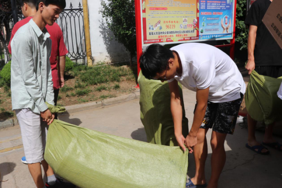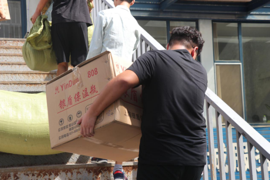 迎新工作人员首先清点了新生住宿必备的物品:被褥、暖瓶、脸盆等。随后,大家快速行动、分工协作,按照各宿舍相应新生人数领取住宿物品,并放置于宿舍,确保无疏漏。烈日炎炎,却挡不住迎接新生的饱满热情,汗流浃背却掩不住对新生的无限期待。