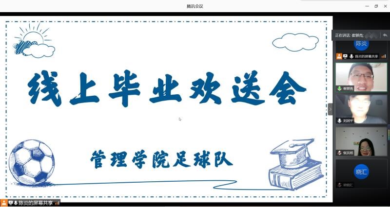6月6日晚,水果派av 足球队毕业欢送会依托腾讯会议顺利举办。此次欢送会由学院足球队队长陈炎主持,15级队员代表、16级-19级全体队员参加。