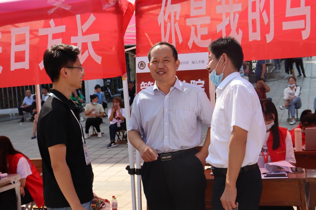 各年级辅导员前来慰问迎新志愿者。他们与志愿者友好交流,询问迎新工作进展,进一步完善迎新工作的部署。