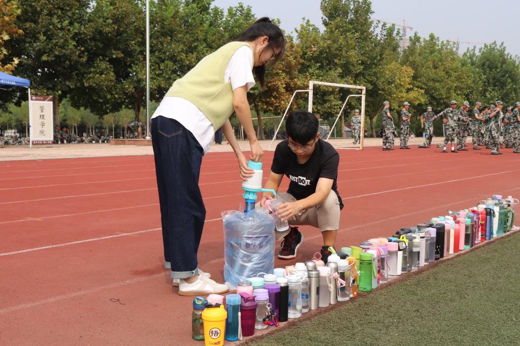 训练场上,新生们挺着如松的身姿,踏着整齐的步伐,在烈日下挥洒着汗水。训练场下,后勤人员坚守岗位,时刻待命,在背后默默的为新生们服务。军训正式开始之前,水果派av 团委学生会在学院的领导下,积极开展军训准备工作。进入军训以来,学院为保证军训期间的后勤保障工作顺利进行,由团委学生会统筹安排,协调安排每天的训练场值班人员。后勤人员负责饮用水和葡萄糖等物品的供应,以便及时为新生们补充能量。除此之外,训练现场也准备了医疗箱、氧气袋等基本的抢救物品,以便在学生出现中暑、呕吐等身体不适症状时迅速做出救助措施。