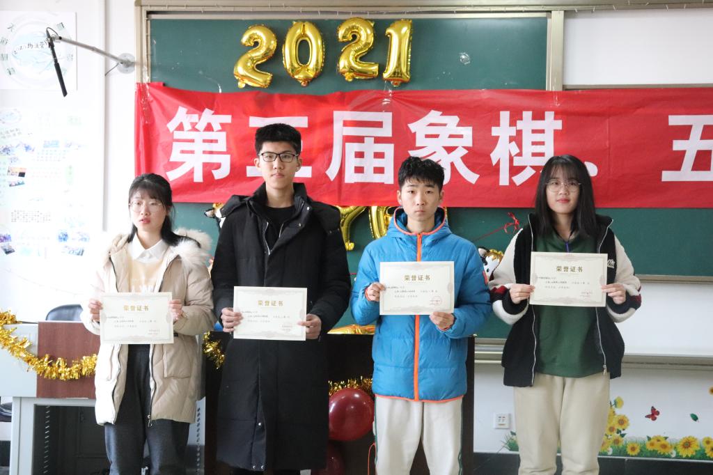 联赛过程中,各参赛选手自觉遵守比赛规则,思维缜密、处变不惊,展现出卓越的博弈水平和高尚的体育精神。赛场上选手们沉着冷静、毫不畏缩,展现出良好的心理素质和品德修养。经过多周激烈的对弈角逐后,共产生7个获奖专业及33名获奖人员。2020级物流管理专业和2020级工商管理专业荣获象棋比赛专业一等奖,李德生、刘世达、杜振恩同学荣获象棋比赛个人一等奖。2019级财务管理专业荣获五子棋比赛专业一等奖,魏璐雅、李守富、杨梦帆同学荣获五子棋比赛个人一等奖。