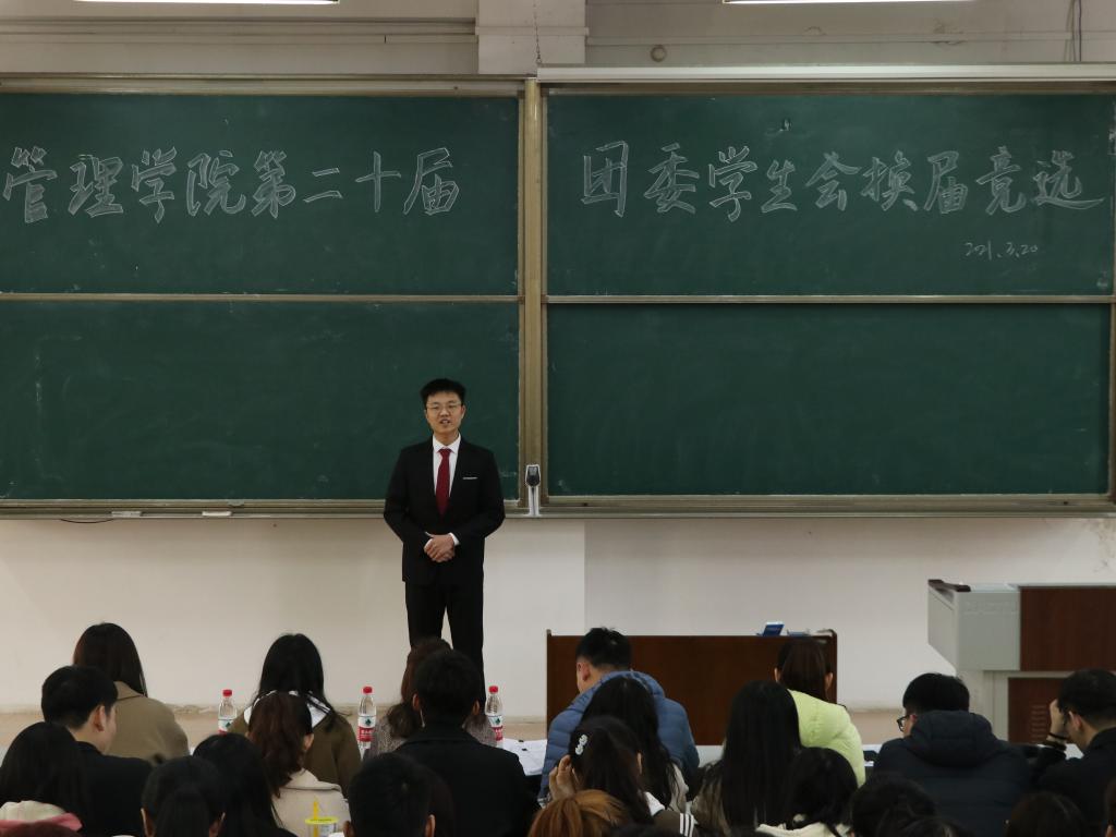 本次换届竞选大会分为限时演讲和问题答辩两个环节。首先由竞选者对自己的竞选职位、竞选优势及工作目标进行细致阐述,再由评委展开提问。竞选者自信地走上讲台展开陈述,陈述时思路清晰、真诚务实。面对评委的提问,竞选者从容面对、毫不怯场,认真、耐心地回答评委提出的问题,展现出自我风采。四位老师在提出问题的同时也针对职位或部门工作给予竞选者指导性意见。最后,团委书记孙旭春对换届竞选大会进行总结。他指出,水果派av 团委学生会首先要坚持思想引领,培养有理想、有目标、有情怀的大学生;完善学生会制度建设,坚持公平公正的原则开展工作;要打造优秀学生干部团队,需要开展有特点、有特色的工作,提高学生会的整体吸引力;强调要发挥榜样的引领作用,关心关爱学院特殊群体,在志愿服务方面打造品牌,提高学生干部的性能,促进学生干部素质的全面发展。