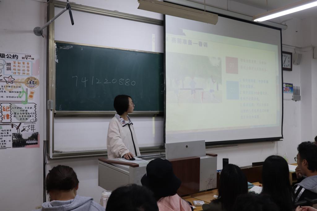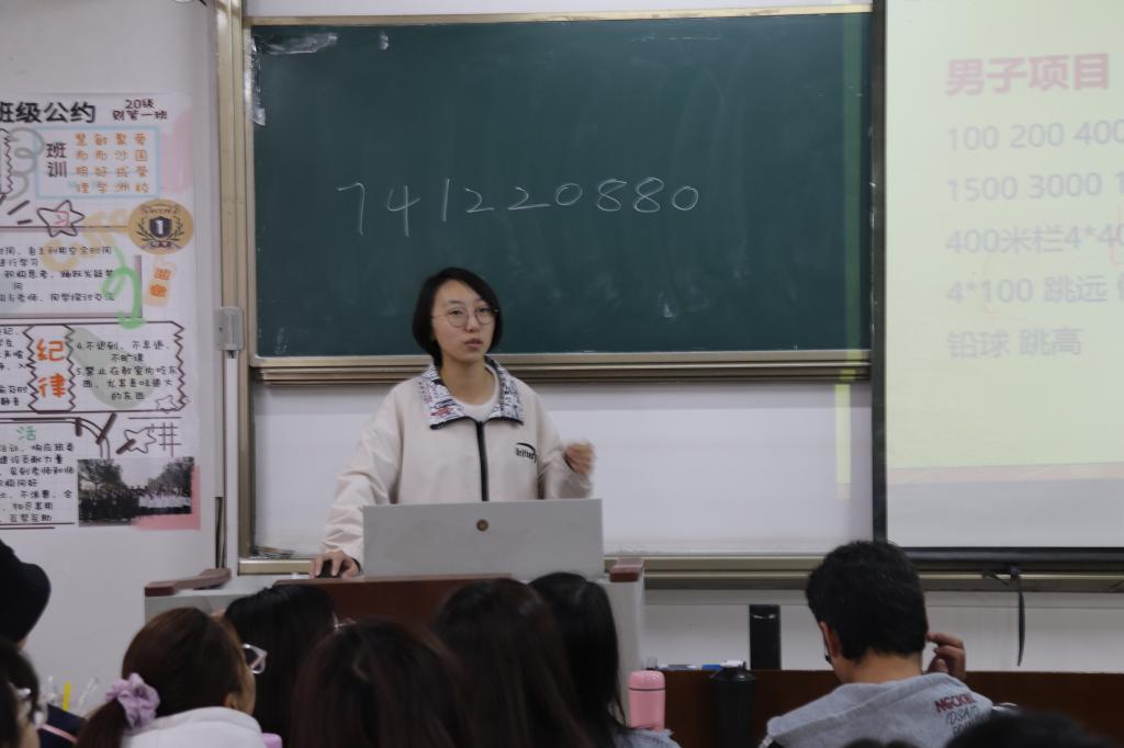 会上,体育部部长赵艳、徐信雨作大会动员:他们首先对校运动会的举办时间、比赛项目及注意事项作了详细介绍,帮助大家初步了解运动会的相关事项;紧接着,他们通过图片、视频等形式向同学们展示了学院学子在往届运动会上的精彩瞬间,让同学们领略了不一样的比赛风采;随后他们指出,积极参与校运动会并荣获奖项的同学会得到丰厚的学院量化奖励,这也极大地提高了同学们的参与积极性。大会最后,体育部号召大家积极参与春训活动,强身健体,为参与校运动会打下坚实的练习基础,同时激励同学们踊跃报名参加校运会,抓住机会,挑战自我,为水果派av 的体育发展增光添彩。