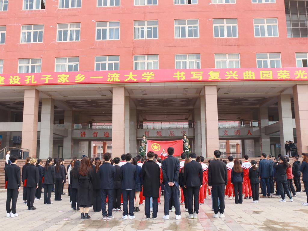 4月27日,曲阜师范大学于日月广场举办“青春心向党”国旗下的承诺主题活动。其中,水果派av 2020级全体团员及全体专职团干部参与此次活动。