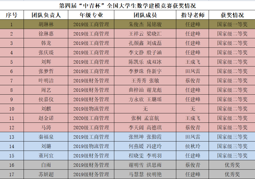 捷报再传!管院学子在2021年第四届中青杯全国大学生数学建模竞赛中喜获佳绩