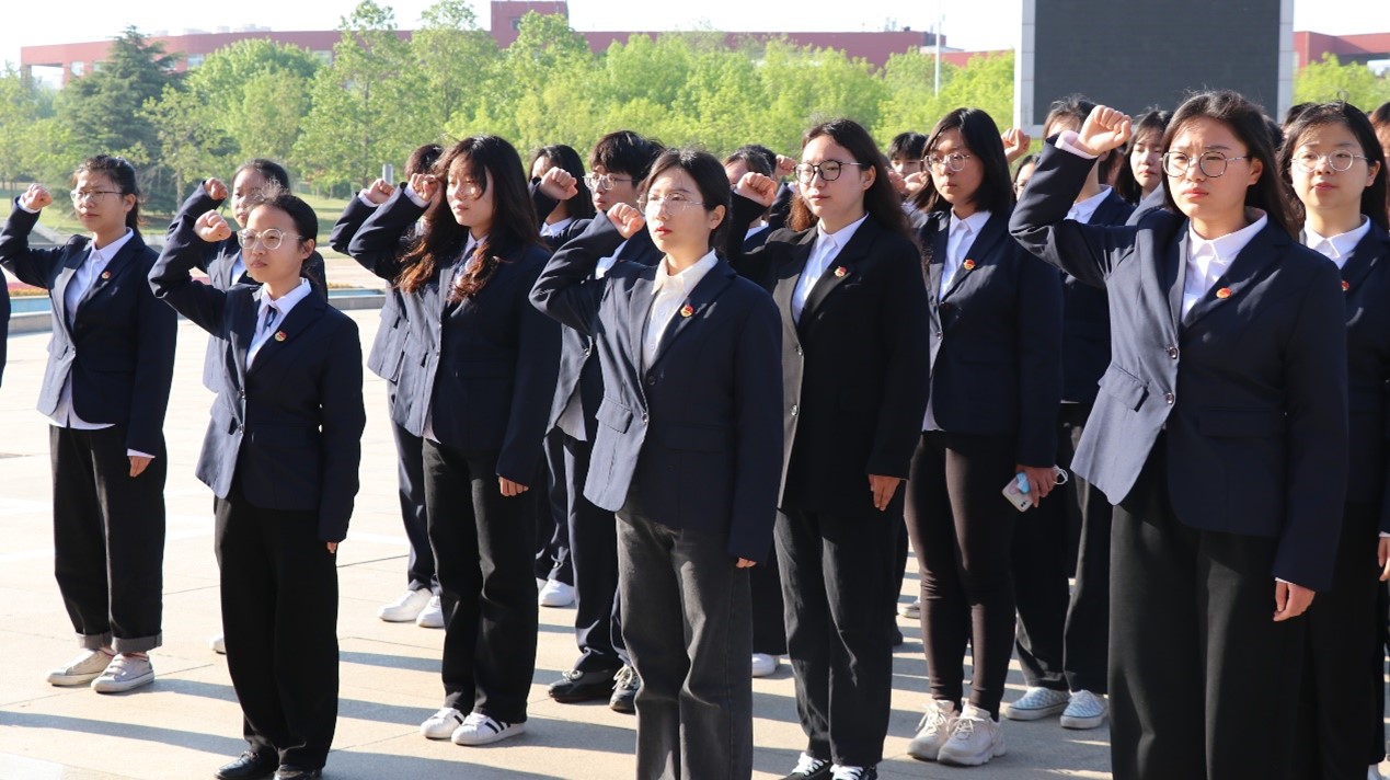 为传承五四精神,献礼建团百年,5月4日,水果派av 于日月广场开展弘扬“五四”精神——重温入团誓词,不忘初心使命主题活动,将青春之声融入百年华章。水果派av 2021级各团支部团员代表参与此次活动。