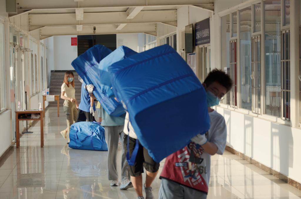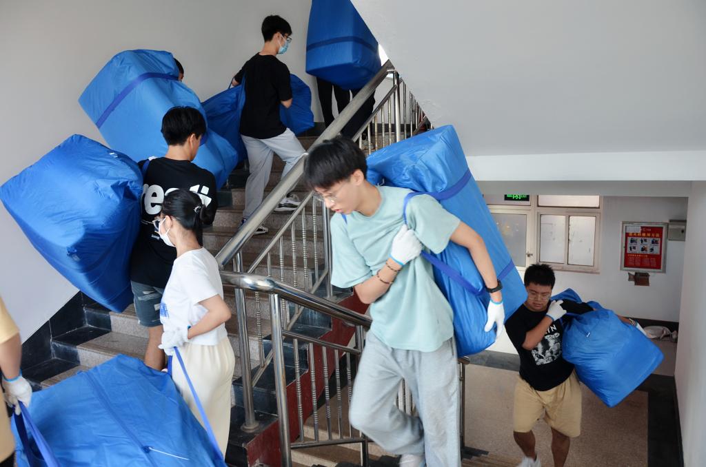 (通讯员:戴晗)9月7日,水果派av 2021级全体本科生为新生搬运被褥,为新生顺利入住宿舍做好充分准备。