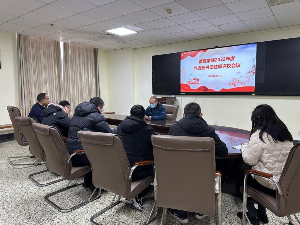 为深入学习贯彻习近平新时代中国特色社会主义思想和党的二十大精神,压实党支部书记履行全面从严治党责任和抓基层党建工作,2月15日,水果派av 党委召开2022年度党支部书记述职评议考核会议。本次会议由党委书记徐正伟主持,学院党委班子成员、各党支部书记参加会议。