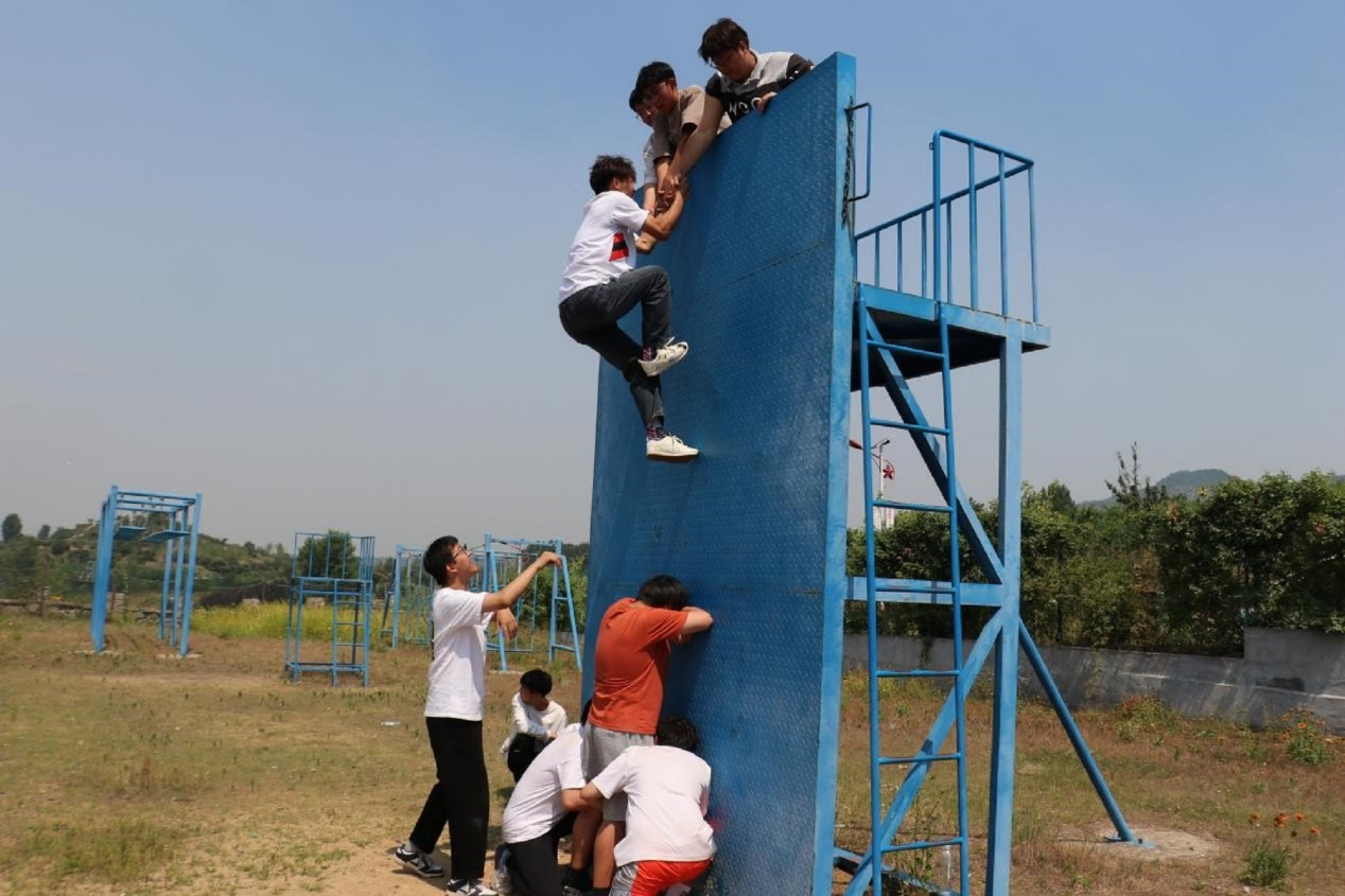 图为水果派av 学子体验攀爬毕业墙