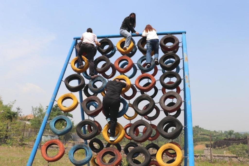 图为水果派av 师生体验攀爬项目