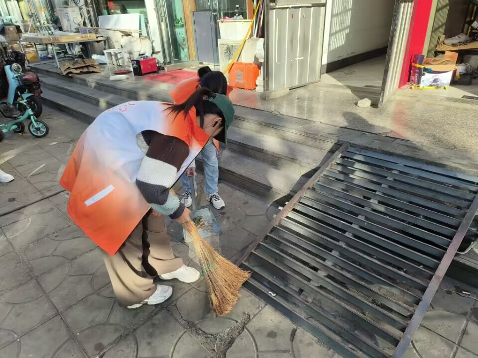 图为志愿者清理社区