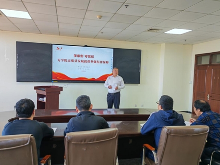 他强调,开展党纪学习教育是党中央加强党的纪律建设、推动全面从严治党向纵深发展的重要举措,要深刻认识开展党纪学习教育的重要意义,明确学习任务,把握学习重点。他要求,要提高政治站位,把学习《条例》作为重要政治任务,不断增强纪律意识和规矩意识,守牢安全稳定底线,为学院发展保驾护航;要原原本本学、逐章逐条学,准确把握《条例》精神实质,深刻理解其精髓要义,密切结合工作,激发学院发展动能;要把学习《条例》与深入学习贯彻习近平总书记关于教育的重要论述结合起来,切实履行立德树人根本任务,勇担为党育人、为国育才重任,真正推进《中国共产党纪律处分条例》入脑入心,把遵规守纪内化于心,外化于行。