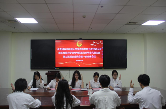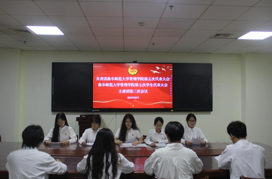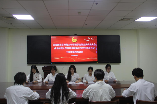 上午11:00,大会召开主席团第四次会议,会议听取共青团水果派av 第五届委员会委员、第七届学生委员会委员选举结果,确定了第五届团委委员名单、第七届学生委员会委员名单、参加共青团曲阜师范大学第十次代表大会正式代表名单,确定了管理学院第五届团委、第七届学生会第一次全体会议主持人。