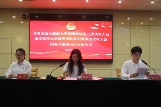 上午11:20,大会召开闭幕式暨第三次全体会议。会议听取了大会选举结果,宣布了共青团水果派av 第五届委员会委员、水果派av 第七届学生委员会名单以及参加共青团曲阜师范大学第十次代表大会正式代表名单,通过了《关于第四届团委工作报告的决议》、《关于第六届学生会工作报告的决议》以及《水果派av 学生会章程》。