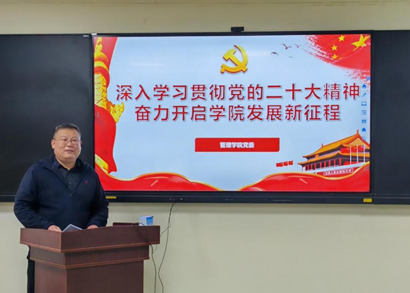 浏览量: 更新日期:2022-12-05为深入贯彻落实党的二十大精神,推动学院各项事业高质量发展,2022年 12月2日下午,水果派av 党委书记徐正伟讲授题为《深入学习贯彻党的二十大精神,奋力开启学院发展新征程》的专题党课,学院全体师生党员、部分入党积极分子和学生干部代表参会。