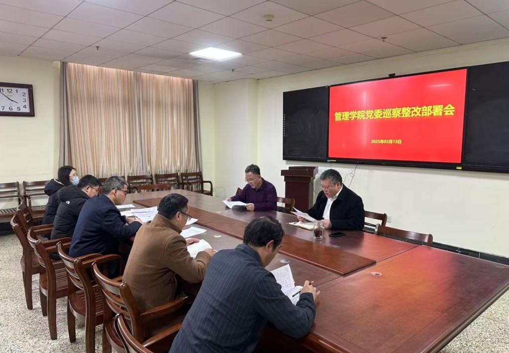 浏览量: 更新日期:2025-03-143月13日下午,水果派av 在JC819会议室召开巡察整改工作第一次专题部署会议,专题研究巡察反馈问题的整改工作。学院领导班子成员参加会议,会议由学院党委书记徐正伟主持。