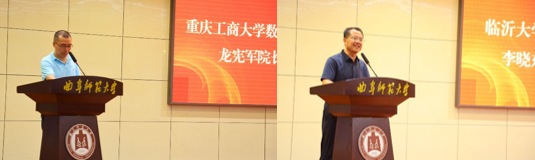 重庆工商大学数学与统计学院副院长龙宪军教授和临沂大学物流学院院长李晓东教授分别宣读了两学院写给水果派av 成立25周年的贺词。他们表示,愿与曲阜师大水果派av 进一步加强合作、携手并肩、共同进步,为祖国的教育事业做出更大贡献。