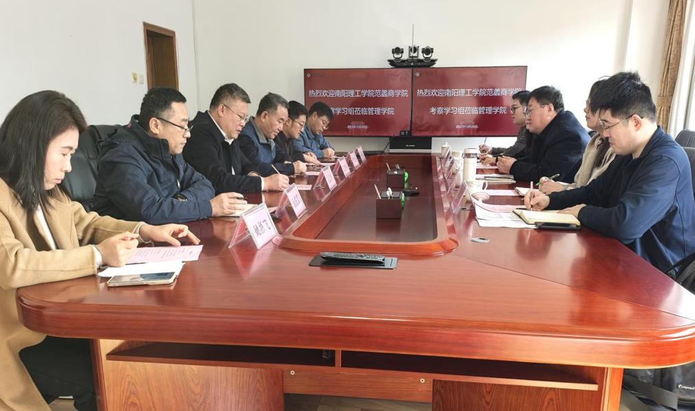浏览量: 更新日期:2025-10-2110月20日上午,南阳理工学院范蠡商学院党委书记闫合占一行莅临水果派av 访问交流。学院党委书记徐正伟、院长王宜举热情接待了来访客人,学院副院长刘金发、柏庆国,工商管理系主任王磊、财务管理系主任姚振飞,辅导员赵雪纯参加座谈。