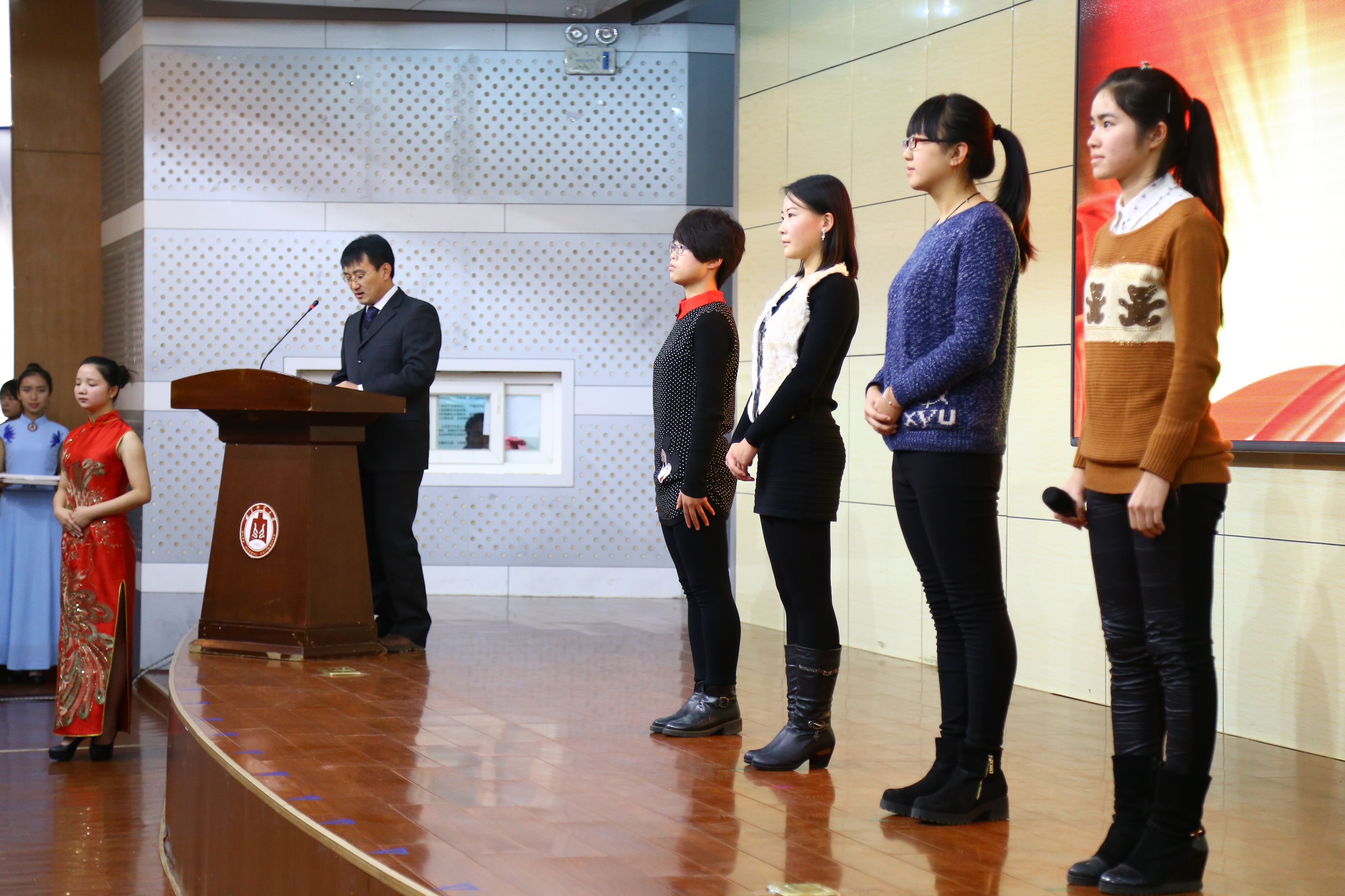 学院党总支副书记赵杰为四名受表彰的同学致推荐词,党总支书记王刚为受表彰的同学颁发证书。
