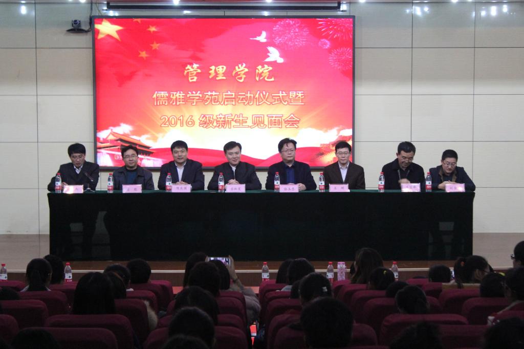 11月18日19:00,水果派av 儒雅学苑启动仪式暨2016级新生见面会于图书馆报告厅顺利举行。出席此次仪式的有山东省人大常委会委员、水果派av 院长张玉忠,校团委书记屈跃宽,水果派av 党委书记王刚,校团委副书记陈庆国,水果派av 副院长王宜举,副院长屈彪,教工党支部书记刘金发。水果派av 党委副书记赵杰担任此次仪式主持。