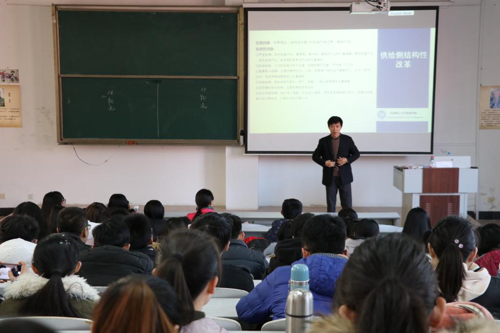 报告过程中,许教授以十九大报告为依据,紧抓十九大的改革背景,联系当前经济增长,针对深化供给侧结构性改革等内容进行了深入的探究与分析,并在供给链管理的创新和应用等方面对同学们作出重要指导。许教授语言风趣幽默,善于用小事举例,加强了同学们对知识的理解与吸收,为同学们呈现了一场学术盛宴。