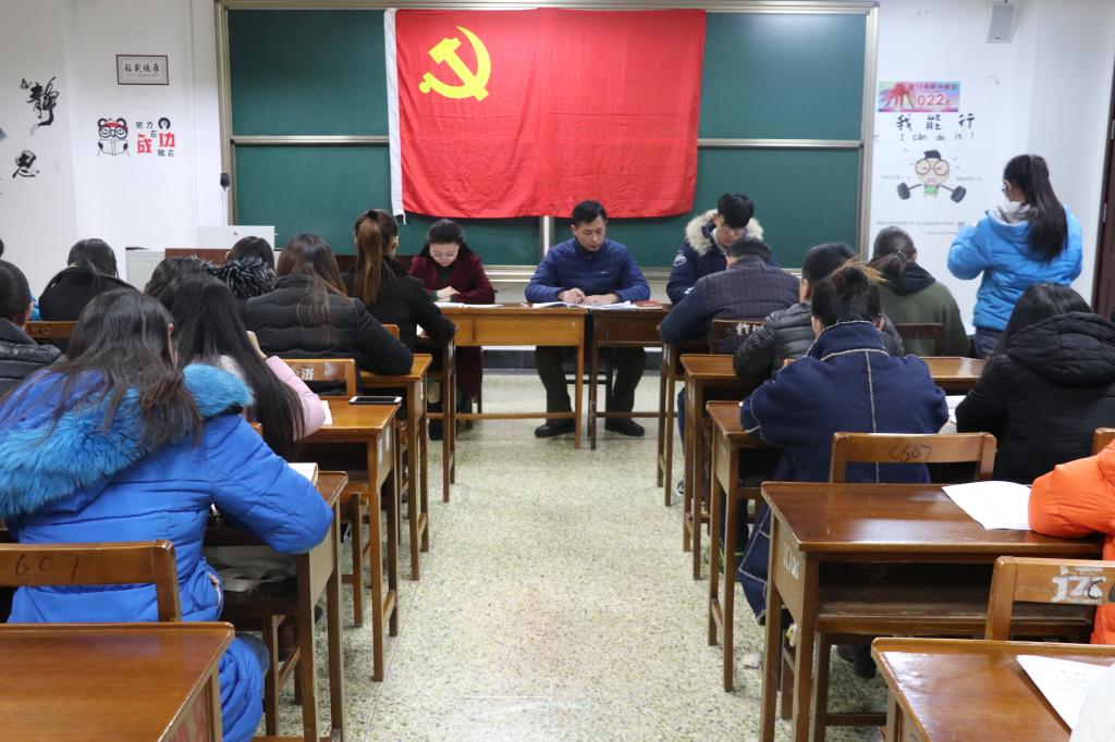12月1日17:00,水果派av 学生党支部于JC607顺利召开预备党员转正会议,大会由辅导员孙旭春主持,辅导员于滢源和赵超同志与会,主要讨论王丽等八位预备党员按期转正的问题。
