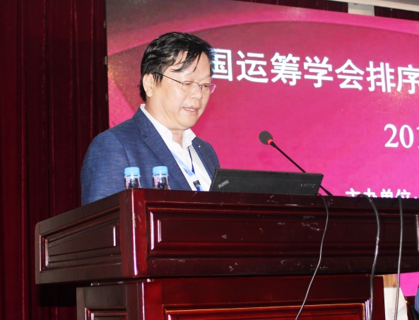 浏览量: 更新日期:2018-05-175月11日,中国运筹学会排序分会和医疗运作管理分会2018学术年会在武钢宾馆举行,张玉忠教授作为中国运筹学会排序分会理事长在开幕式上发表致辞,充分肯定了排序学界老中青科学家为运筹学发展所做的贡献,高度认可了学术年会的意义,希望在座学者能够通过本次论坛探求真理、交流学术。