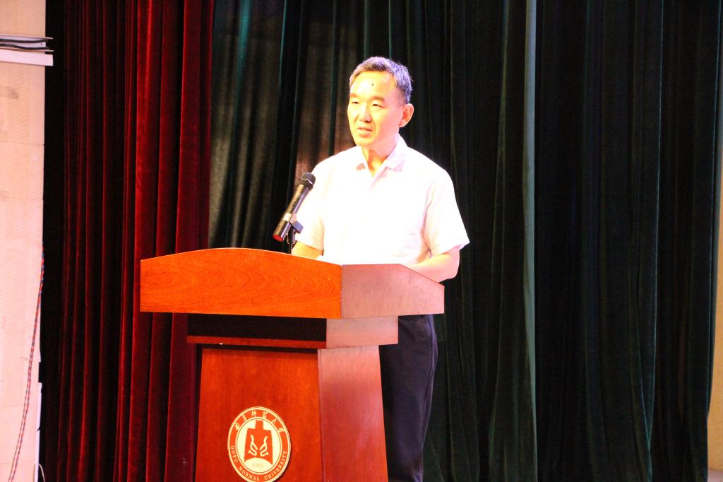大会伊始,王宜举代表水果派av 全体师生欢迎新同学的到来,祝贺他们在学业上更进一步。为加深新生对水果派av 的了解,王宜举对学院专业情况展开详细阐释,认真分析了学院在本科教学方面师资力量雄厚,科研建树丰富等优势,强调学院“因材施教,合理分流”的教育培养方案与优秀培养结果,鼓励新生知行合一、脚踏实地,并对新生如何开展大学生活明确了几点要求:融入大学品行与道德兼修;自立自强竞争与合作并存;增强体魄健康与奋斗同行。教师代表徐健腾倡导新生以“文、行、忠、信”的道德行为规范自己,宽容他人,同时希望新生们能尽快适应大学生活,在曲园度过充实而有意义的四年。最后,由高年级代表李婷婷及新生代表张国宁依次上台发言,从不同的角度阐述对大学生活的不同认识。