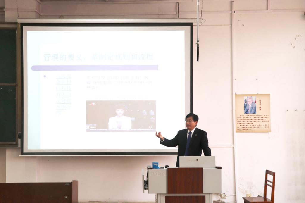 孙兴广结合自身经历与同学们分享了自己的企业管理经验,他强调,管理是一门社会科学,管理的有效性归因于对文化、对人性的认识,提醒同学们不要拘泥于课本知识,要多交流、多实践,从实践中感知人性,并将其应用于管理工作。同时他提出,管理是一门实践科学,历练才能成为真正的管理者,只有那些经过重重磨难历练出来的人才可以称之为强大,希望同学们一定要踏实奋进、自强不息,做一名新时代的有为大学生。